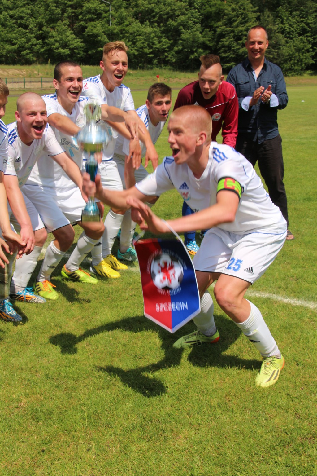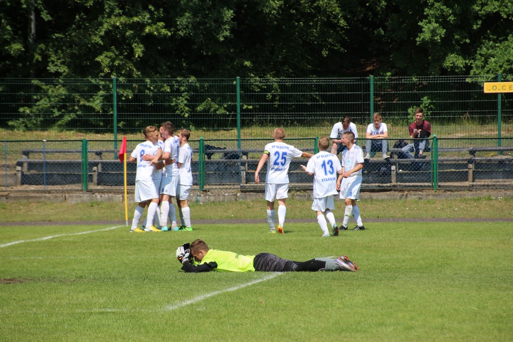 Koniec meczu Błękitni Stargard rozgromili Drawę drawsko Pomorskie 9 : 1 i awansowali do Wojewódzkiej Ligi Juniora Starszego
